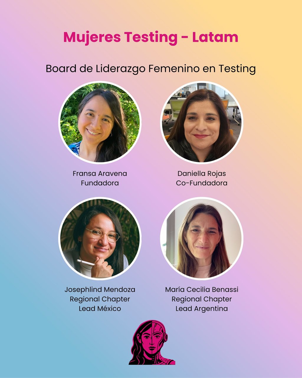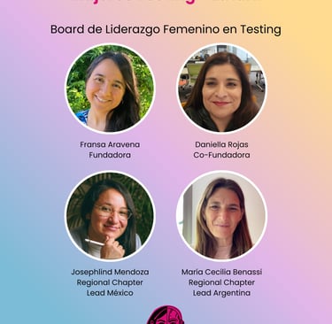 Somos una comunidad que impulsa el crecimiento y la visibilidad de mujeres en el mundo del testing, compartiendo recursos, experiencias y apoyo constante. Tenemos representantes en distintas partes de Latinoamérica, Chile, Argentina, México. Buscando visibilizar a las mujeres de distintas regiones.